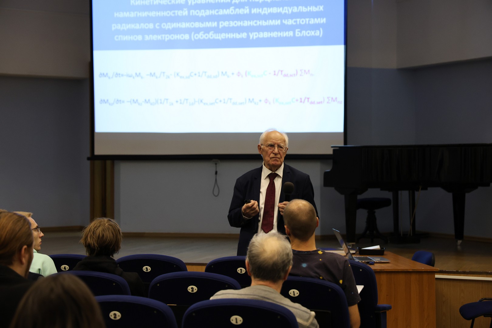 Семинар «Смена парадигмы спинового обмена в разбавленных растворах парамагнитных частиц» для нижегородского научного сообщества прошёл 7 ноября в Институте прикладной физики. С докладом выступил академик РАН Кев Минуллинович Салихов (КФТИ им. Е.К. Завойского, Казань). Желающих узнать о новом подходе к решению фундаментальных вопросов электронного парамагнитного резонанса оказалось около 70 человек.
