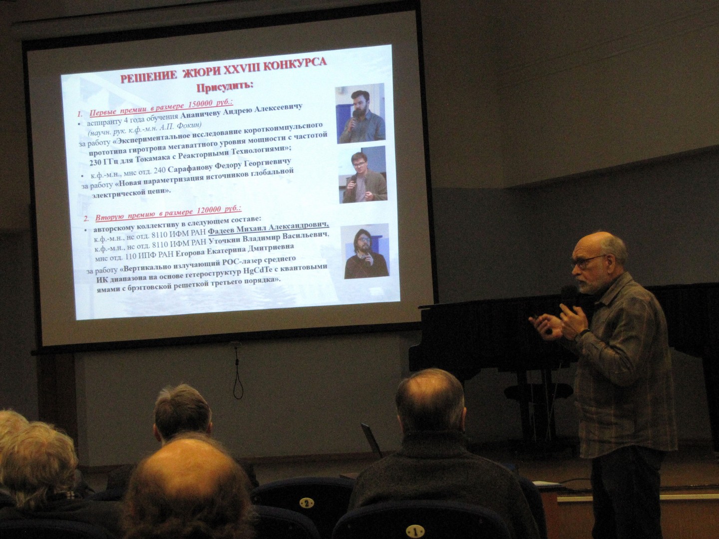 Далее были заслушаны научные сообщения лауреатов XXVIII конкурса работ молодых учёных:
