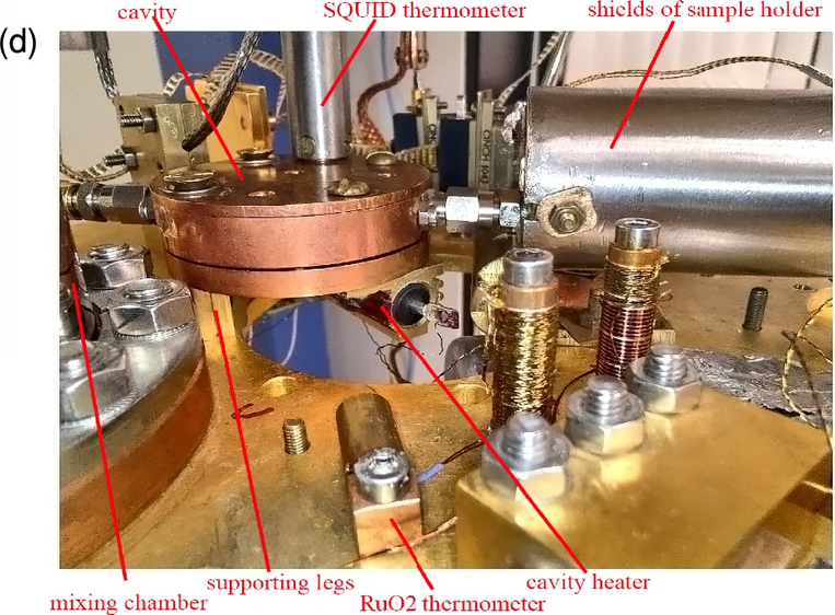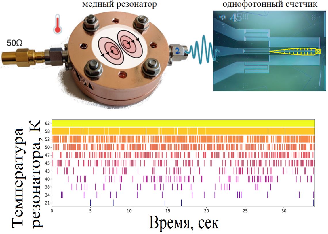 При низкой температуре такой детектор имеет сложную нелинейную гистерезисную вольт-амперную характеристику: при увеличении тока переход на конечное напряжение происходит при некотором значении, называемом критическим током, а возврат к нулевому напряжению происходит при уменьшении тока почти до нуля. В качестве источника ГГц фотонов использовался резонатор с изменяемой температурой. Для нагрева резонатора применялся обыкновенный резистор, а температура контролировалась с помощью квантового сенсора – шумового СКВИД-термометра. Таким образом, экспериментально было подтверждено, что при увеличении температуры резонатора от 20 до 80 мК темп тепловых фотонов, случайно возникающих в резонаторе, изменяется, примерно, от 1 в 1000 с до 1000 в секунду и описывается формулой Планка. Джозефсоновский контакт, изначально находясь в сверхпроводящем состоянии с нулевым напряжением, после прихода фотона переключался в состояние с конечным напряжением.